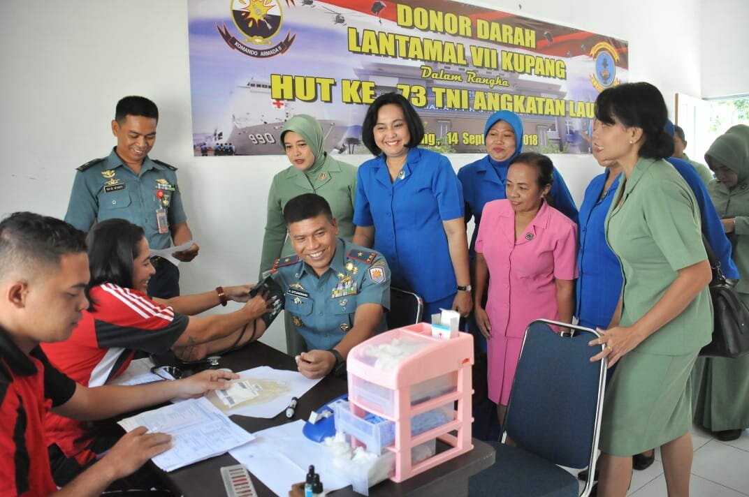 Komandan Lantamal VII Brigjen TNI (Mar) Kasirun Situmorang, S.H, kepada wartawn mengatakan, kegiatan donor darah dilaksanakan dalam rangka memperingati HUT Ke-73 TNI AL.